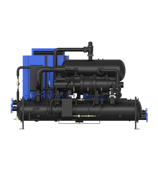 主要由單機(jī)雙級螺桿壓縮機(jī)、蒸發(fā)器、冷凝器、經(jīng)濟(jì)器、可調(diào)節(jié)流閥、機(jī)載變頻器及自動比控制系統(tǒng)組成。壓縮機(jī)采用雙級壓縮設(shè)計,壓比大、升溫高、高效節(jié)能、穩(wěn)定可靠。